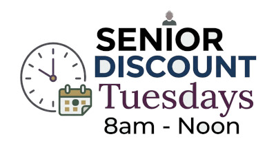 Every Tuesday if you are 55 and over you get a 10% discount from 8am to Noon.